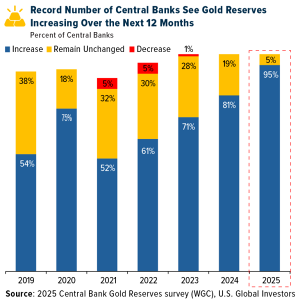 As illustrated on Chart 1, in a 2025 World Gold Council survey 95% percent of central banks expect their Gold holdings to rise over the next 12 months.