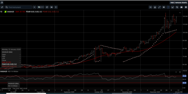 Silver denominated in AUD came within a whisker of $125.00 and closed out last week 17.7% higher at $119.25.